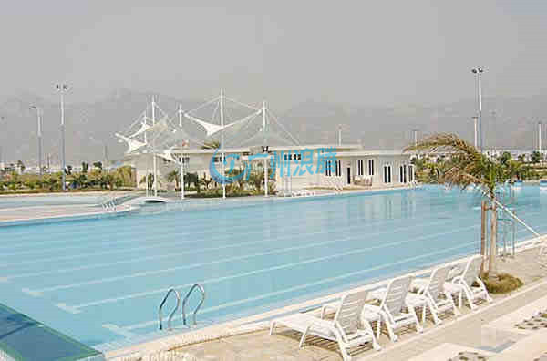 標(biāo)準(zhǔn)游泳池長(zhǎng)50米,寬21米,奧運(yùn)會(huì)世界錦標(biāo)賽要求寬25米,另外還有長(zhǎng)度只有一半即25米的游泳池稱為短池。水深大于1.8米。有8個(gè)泳道,每道寬2.5米,邊道另加0.5米。出發(fā)臺(tái)應(yīng)居中設(shè)在每泳道中心線上,臺(tái)面50厘米×50厘米。臺(tái)面臨水面前緣應(yīng)高出水面50至70厘米,臺(tái)面傾向水面不應(yīng)超過(guò)10度。游泳池的池岸寬一般出發(fā)臺(tái)端不小于5米,其余池岸不小于3米。正式比賽池,出發(fā)臺(tái)池岸寬不小于10米,其他岸寬不小于5米。國(guó)際也有25米游泳池的比賽。